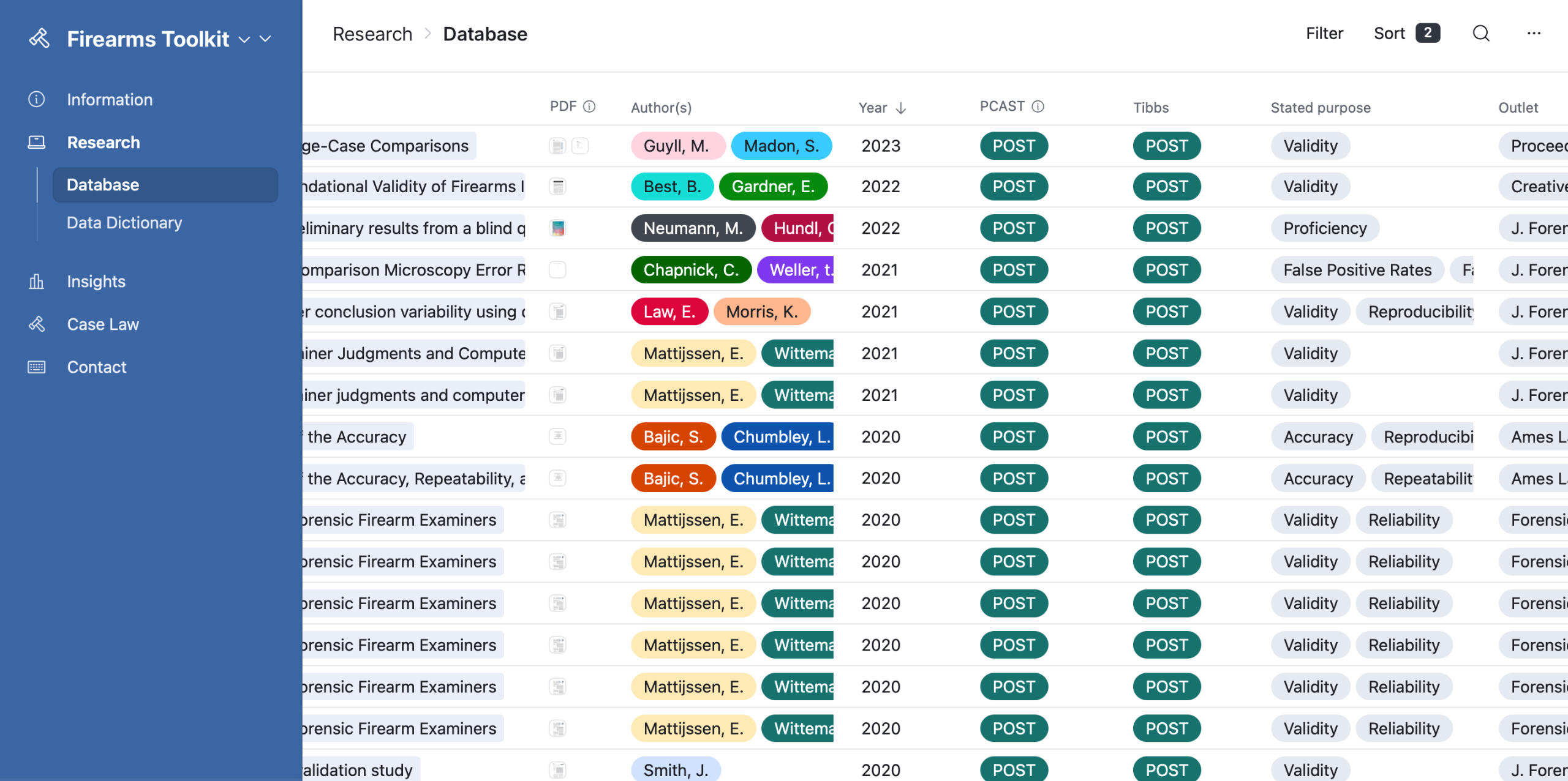 Promoted to Research Director of The Center for Integrity in Forensic Sciences in August. I develop scientific toolkits for defense attorneys. These toolkits contain aggregated scientific publications and case law; an expert witness directory; scientific, legal, and statistical primers; and guidance on challenging forensic evidence in the courtroom. Built using Airtable, Python, and Zotero. Click to enlarge toolkit images: